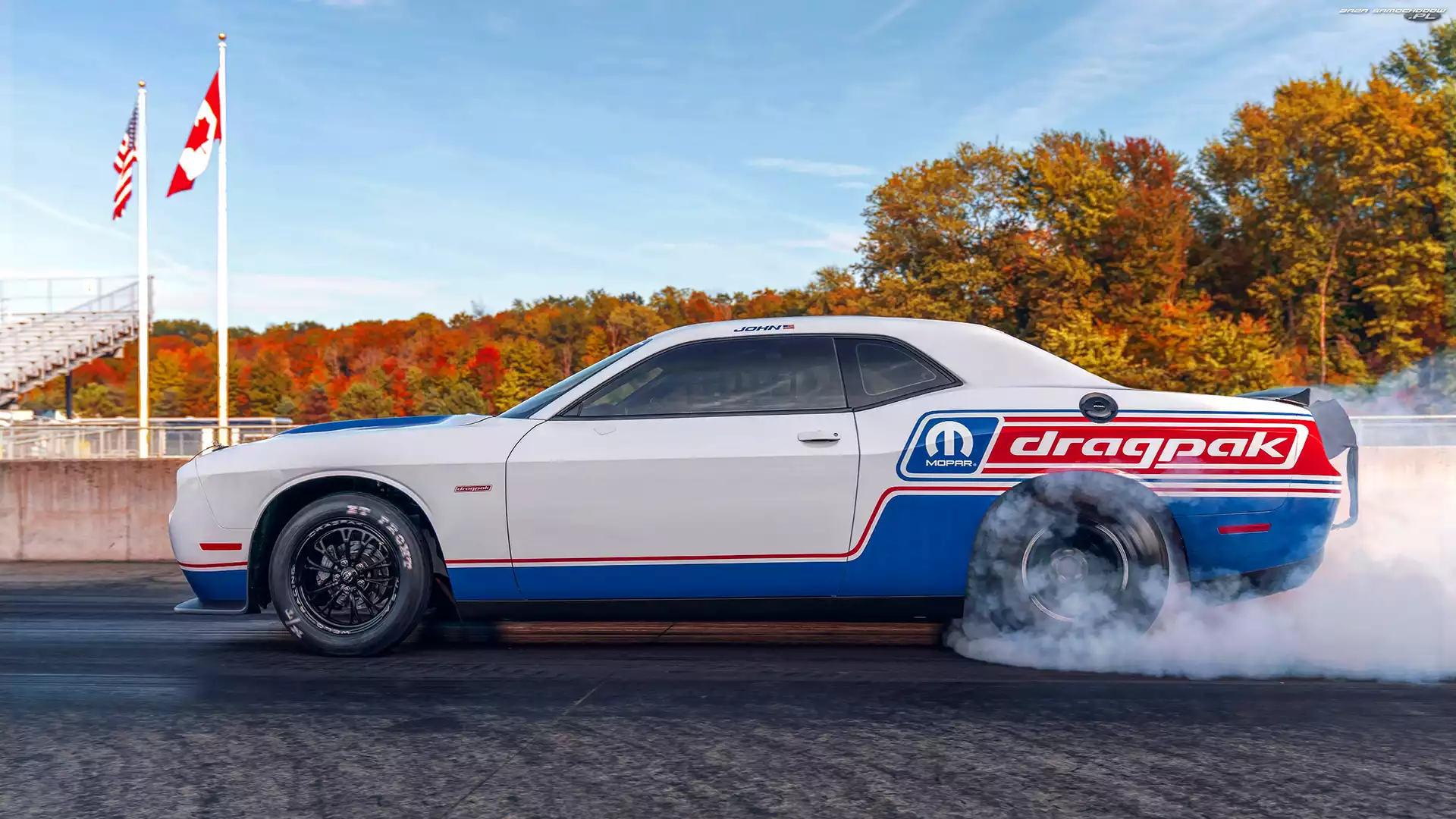 Samochód: Bok, Biało-niebieski, Dodge Challenger Mopar Drag Pak
