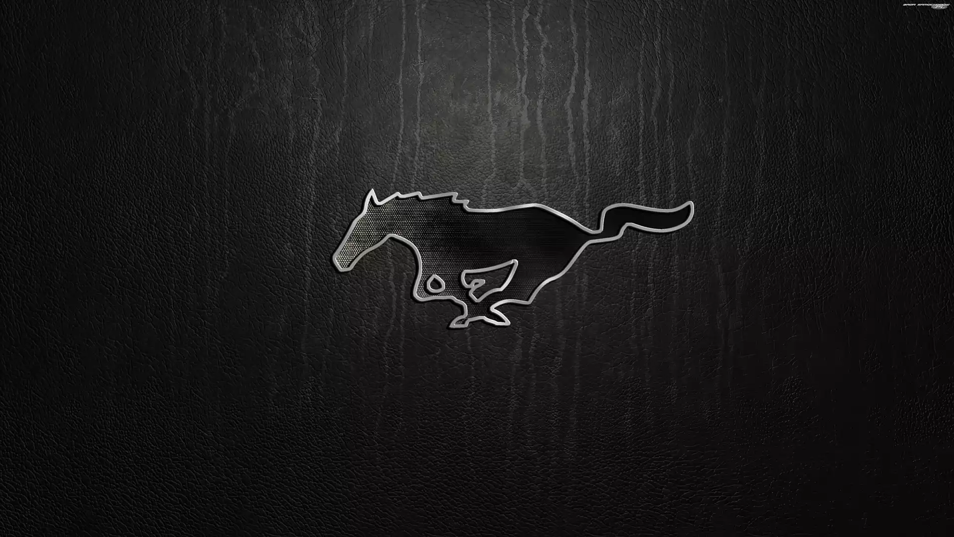 Ford Mustang, Tło, Logo, Ciemne- Zdjęcia samochodów