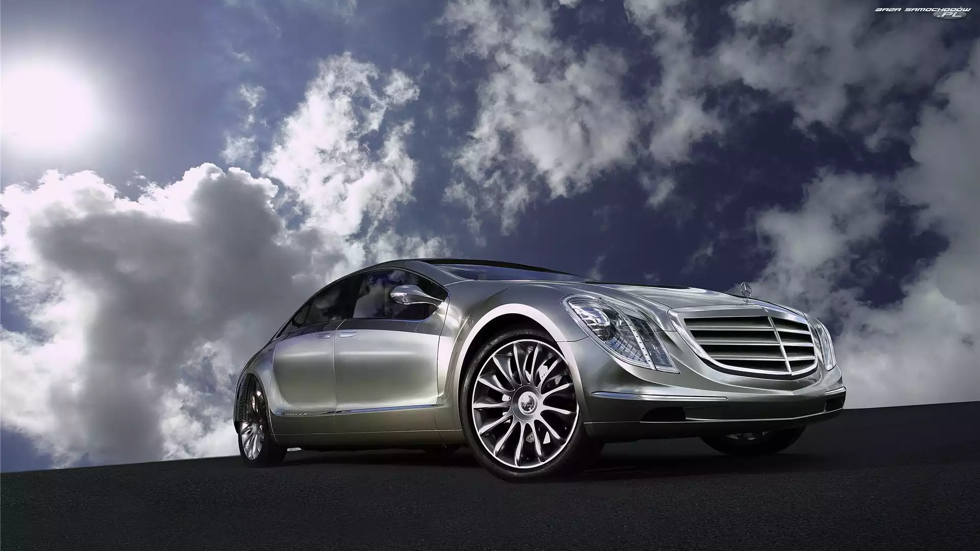 Mercedes, Srebrny, Chmury, Niebo, Samochód, Benz- Zdjęcia samochodów