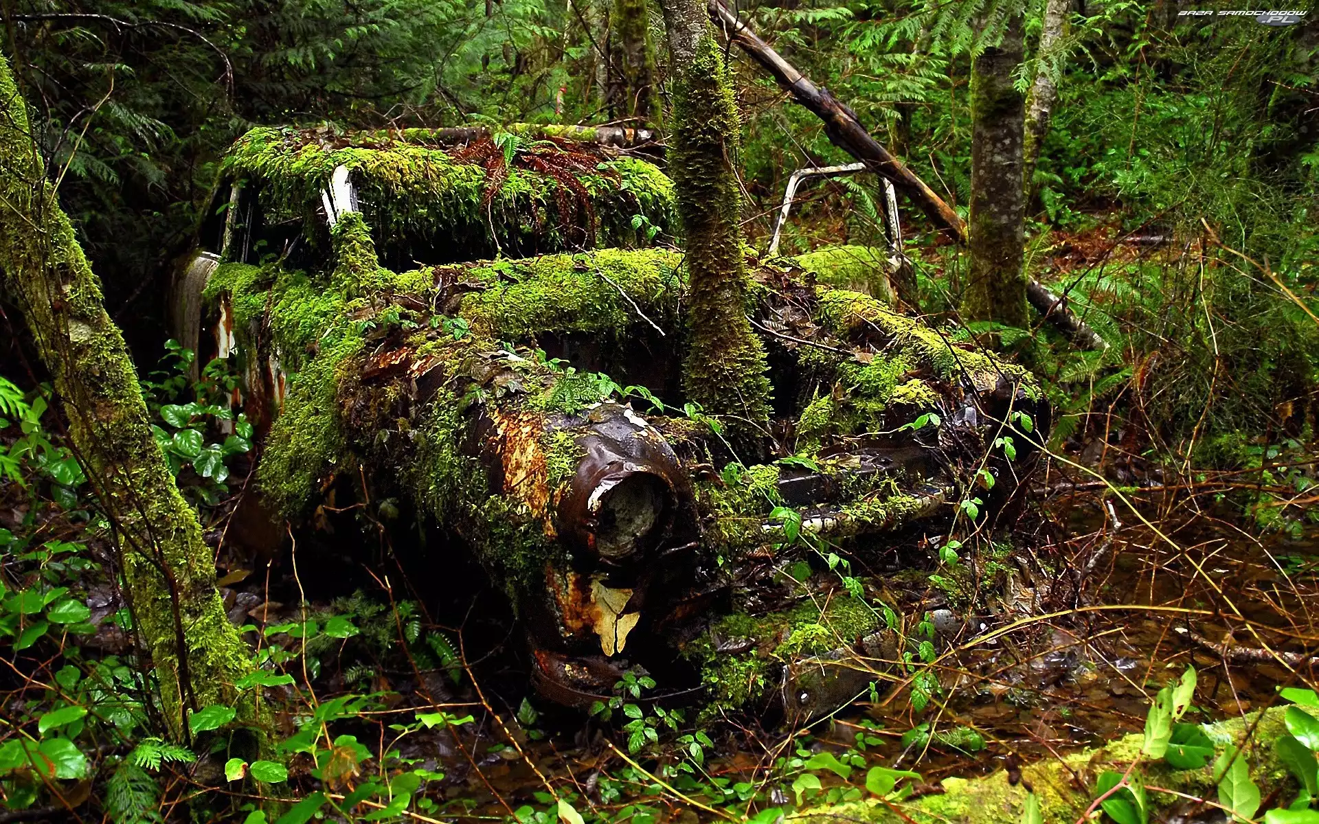 Samochód: Samochód, Las, Mech, Drzewa, Zabytkowy, Rośliny